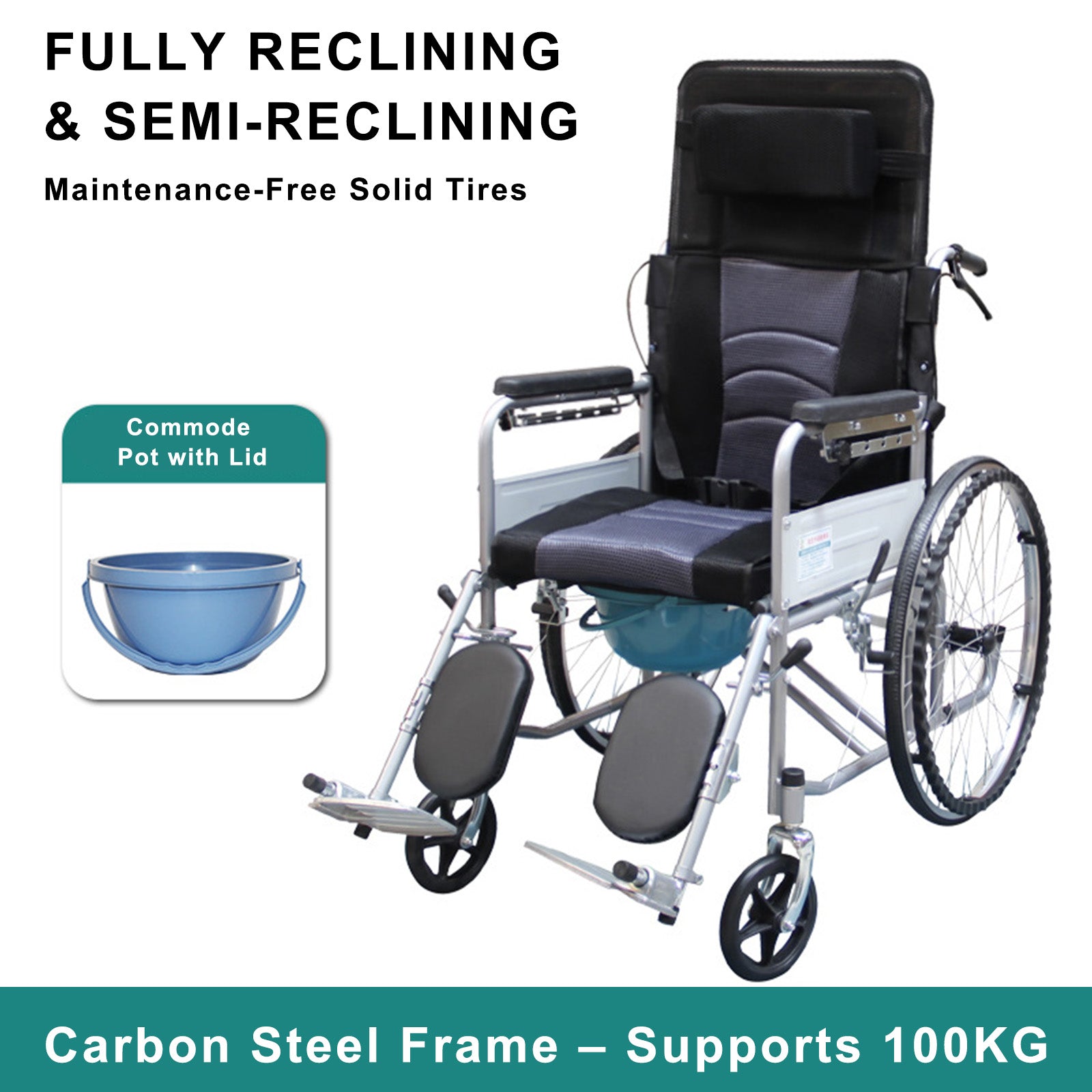 Adjustable Reclining Manual Wheelchair – Full Recline Breathable Mesh and Solid Tires for Comfort and Mobility