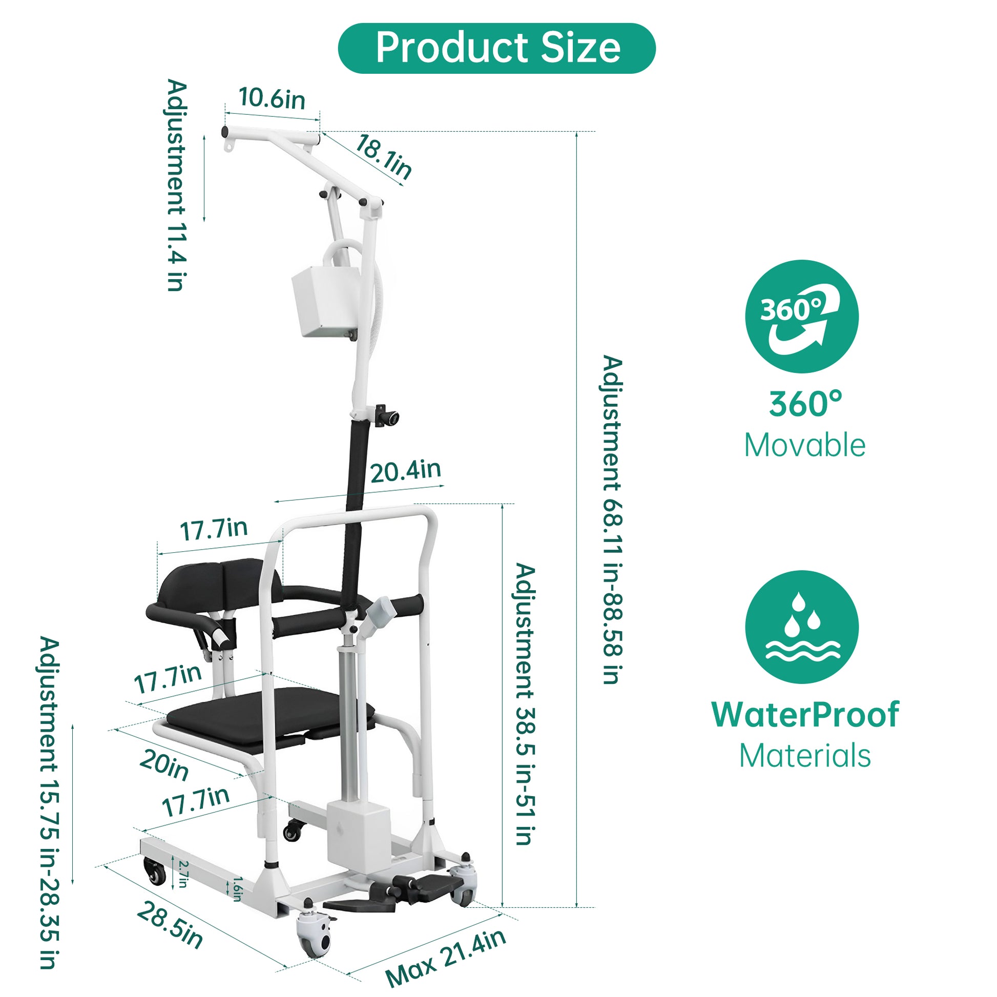 4‑in‑1 Electric Patient Lift • Commode • Wheelchair • Shower Chair