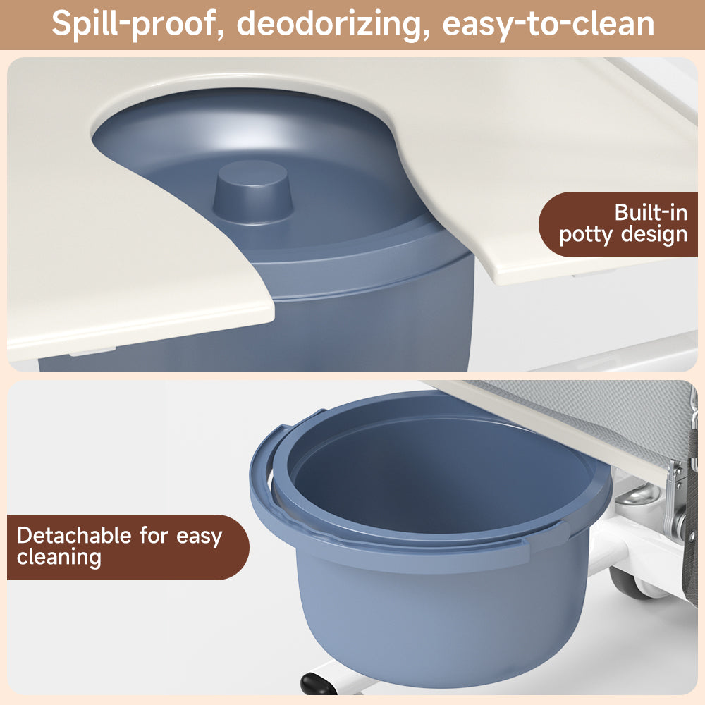 - 🚽 Use the built‑in toilet cut‑out or attach a portable commode pail when needed.