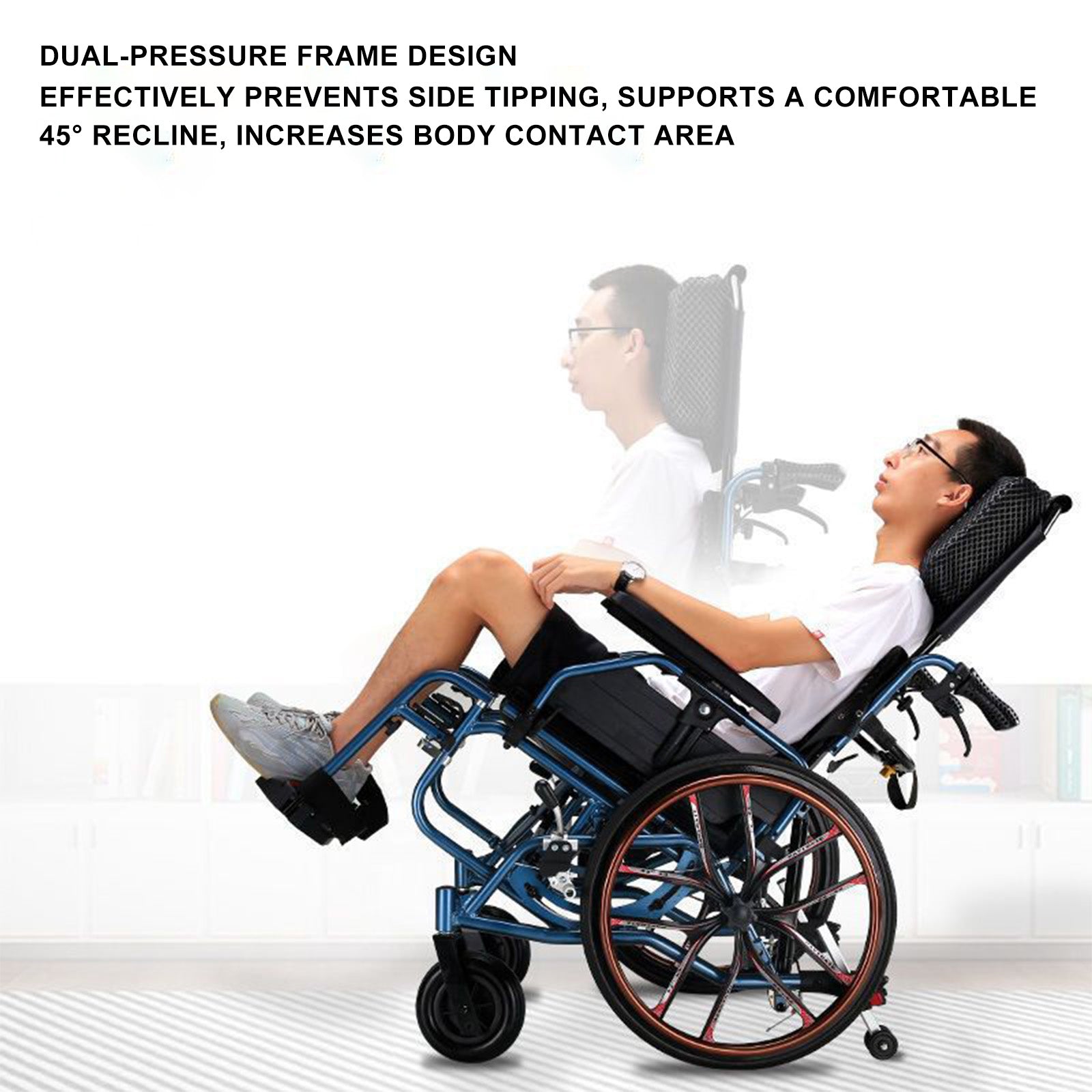 Zero-Gravity Reclining Wheelchair with Dual-Pressure Frame Adjustable Leg Support and Magnesium Alloy Shock-Absorbing Wheels – Comfortable