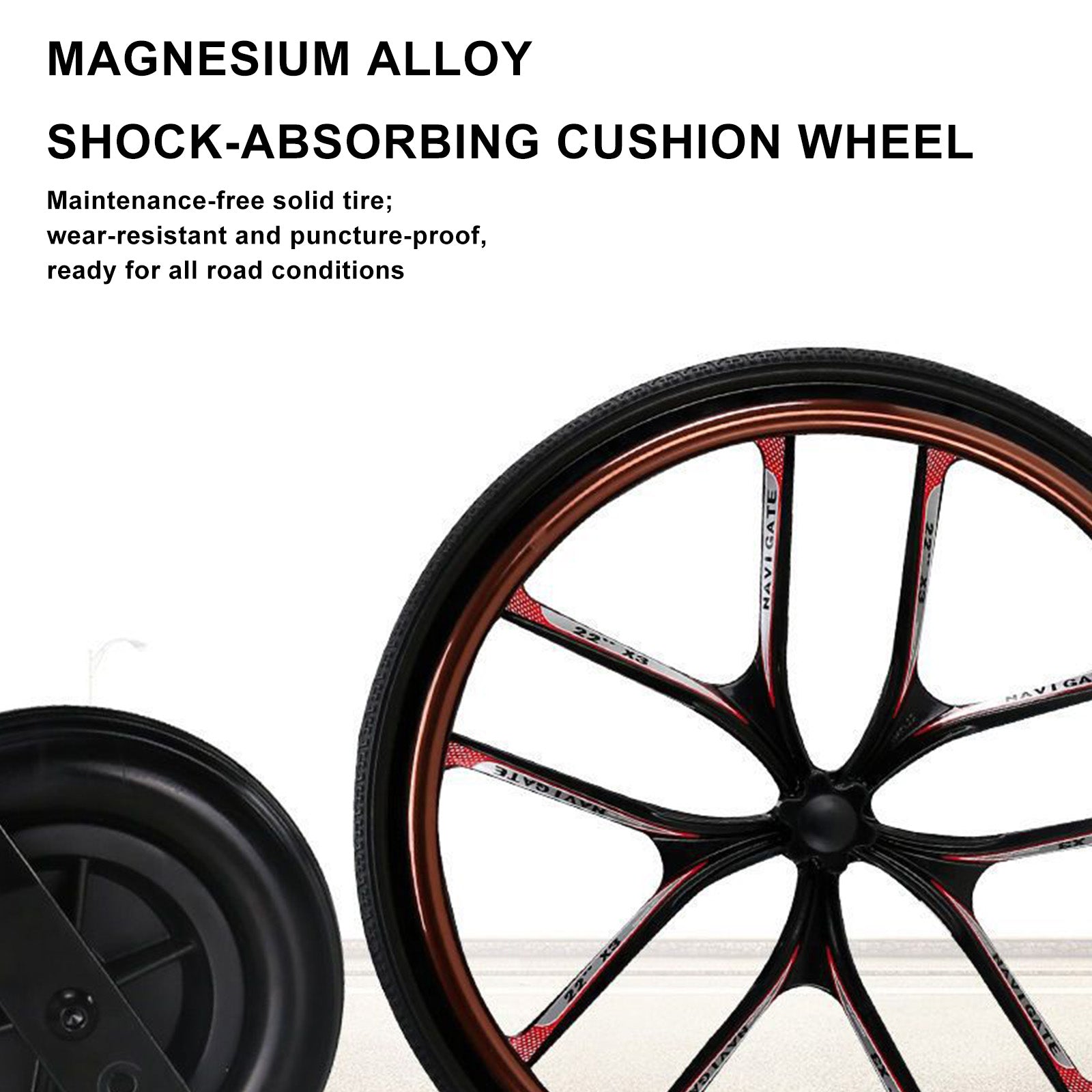 Magnesium Alloy Wheels: Shock-absorbing, puncture-resistant, and low maintenance.