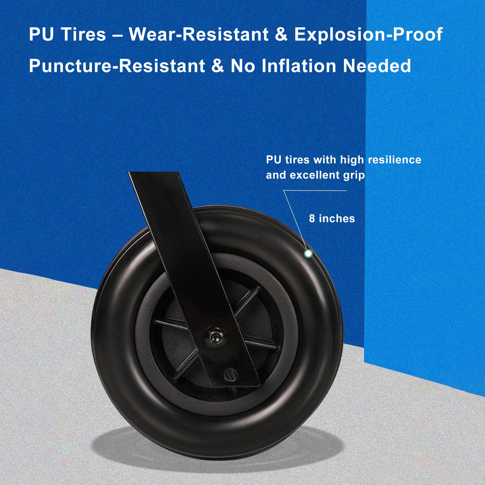 PU Tires: Wear-resistant, explosion-proof, and no inflation needed.