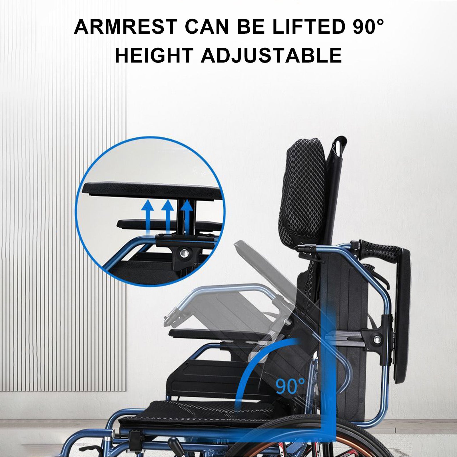Additional features include honeycomb breathable dual-layer seat cushions, adjustable armrests that lift up to 90°, and dual-function reclining brakes for both reclining and braking, offering superior control and safety. The PU tires are wear-resistant and explosion-proof, ensuring reliability in all road conditions.